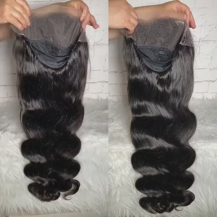 Body Wave 13×4 Full Frontal Lace Wig Pre Plucked Human Hair Wigs Glueless HD Lace Bleached Knots
