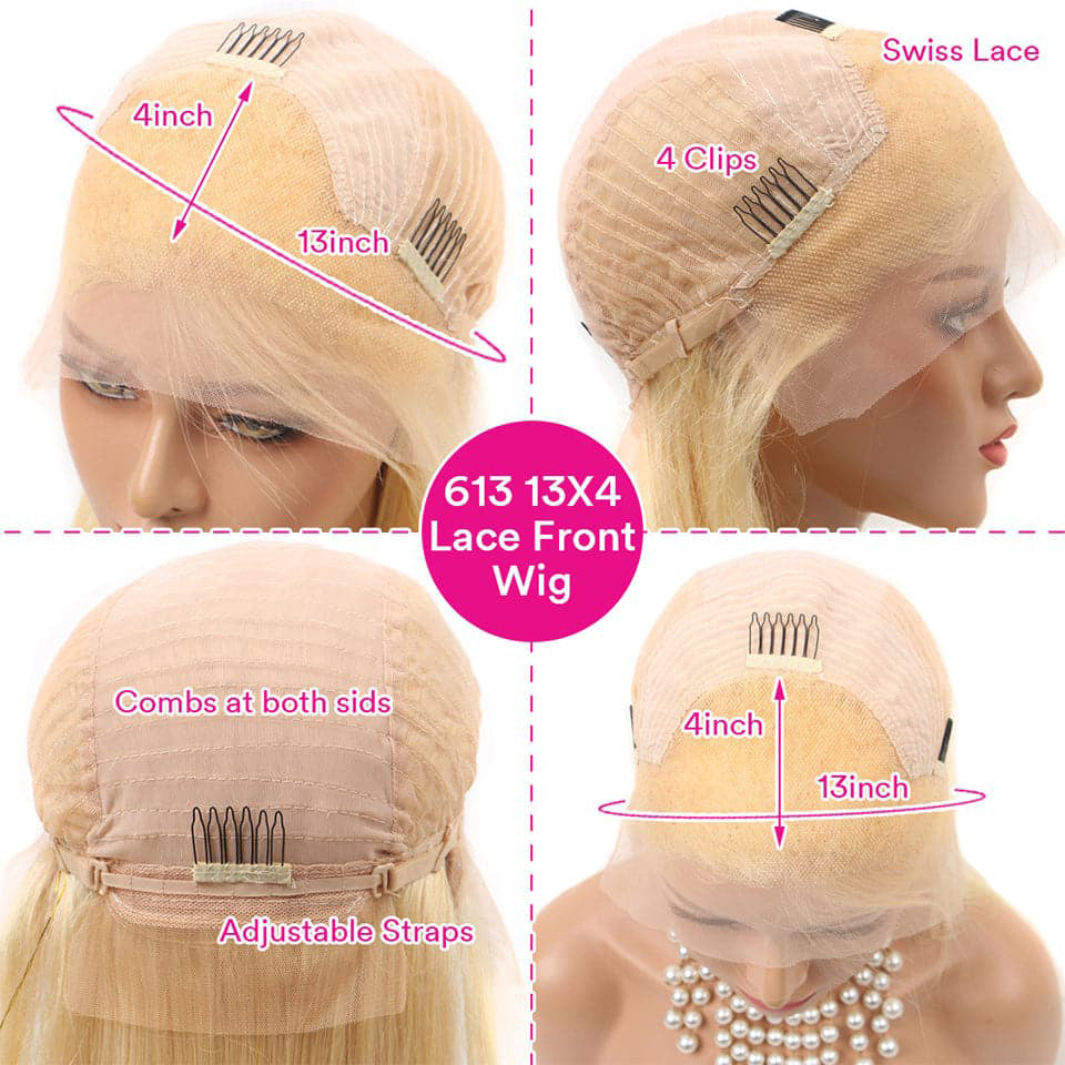 #613 Blonde Straight 13×4 Full Frontal Lace Wig Pre Plucked Human Hair Wigs Glueless HD Lace Wigs