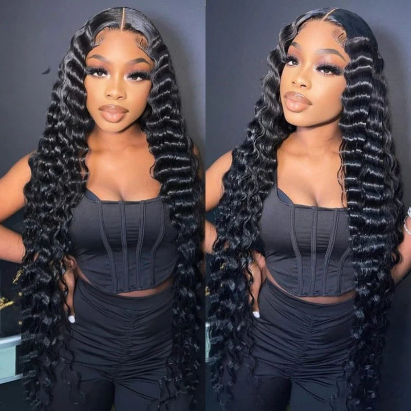 Deep Wave 360 Frontal Lace Wig Pre Plucked Human Hair Wigs Glueless HD Lace Bleached Knots