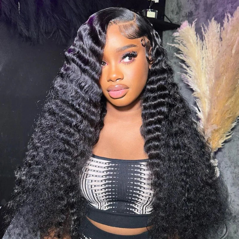 Deep Wave 6x6 Lace Closure Wig Pre Plucked Human Hair Wigs Glueless HD Lace Bleached Knots
