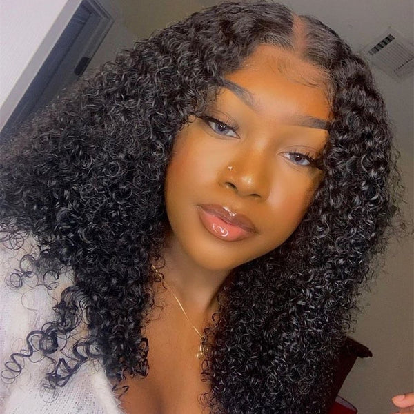 Kinky curly 13×4 Full Frontal Lace Wig Pre Plucked Human Hair Wigs Glueless HD Lace Bleached Knots