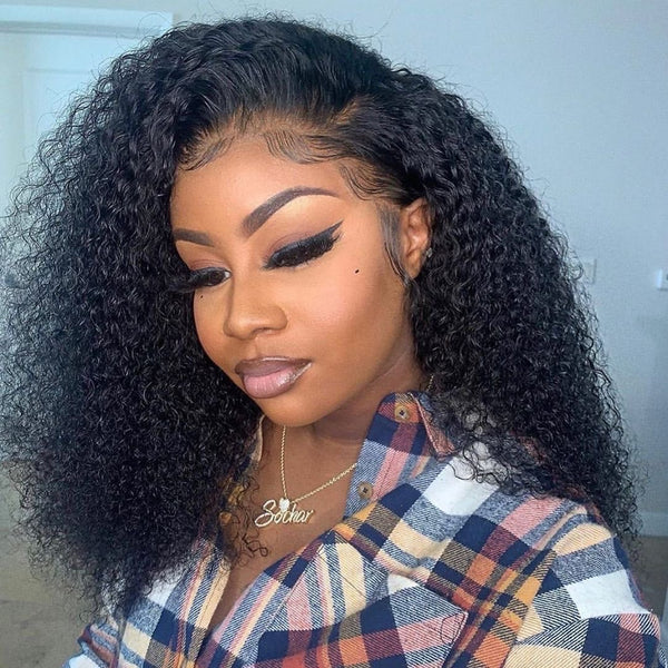 Kinky Curly 5X5 Lace Closure Wig Pre Plucked Human Hair Wigs Glueless HD Lace Bleached Knots