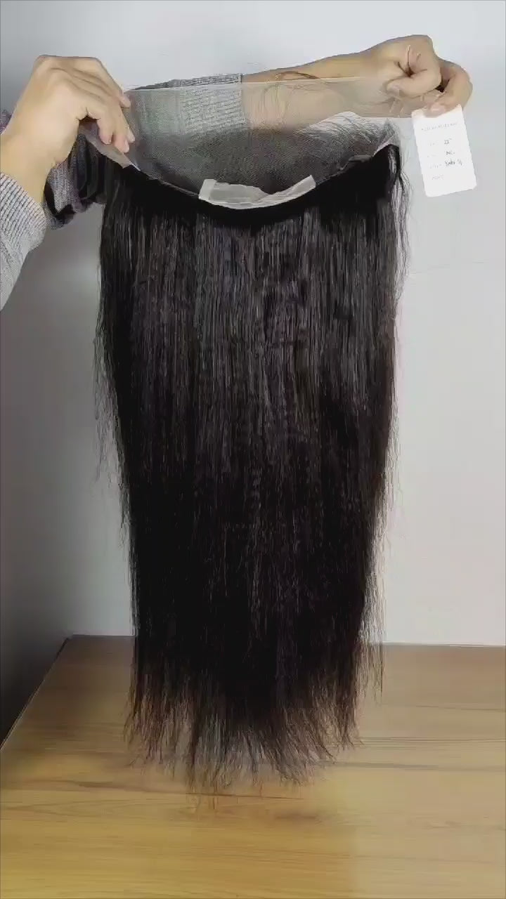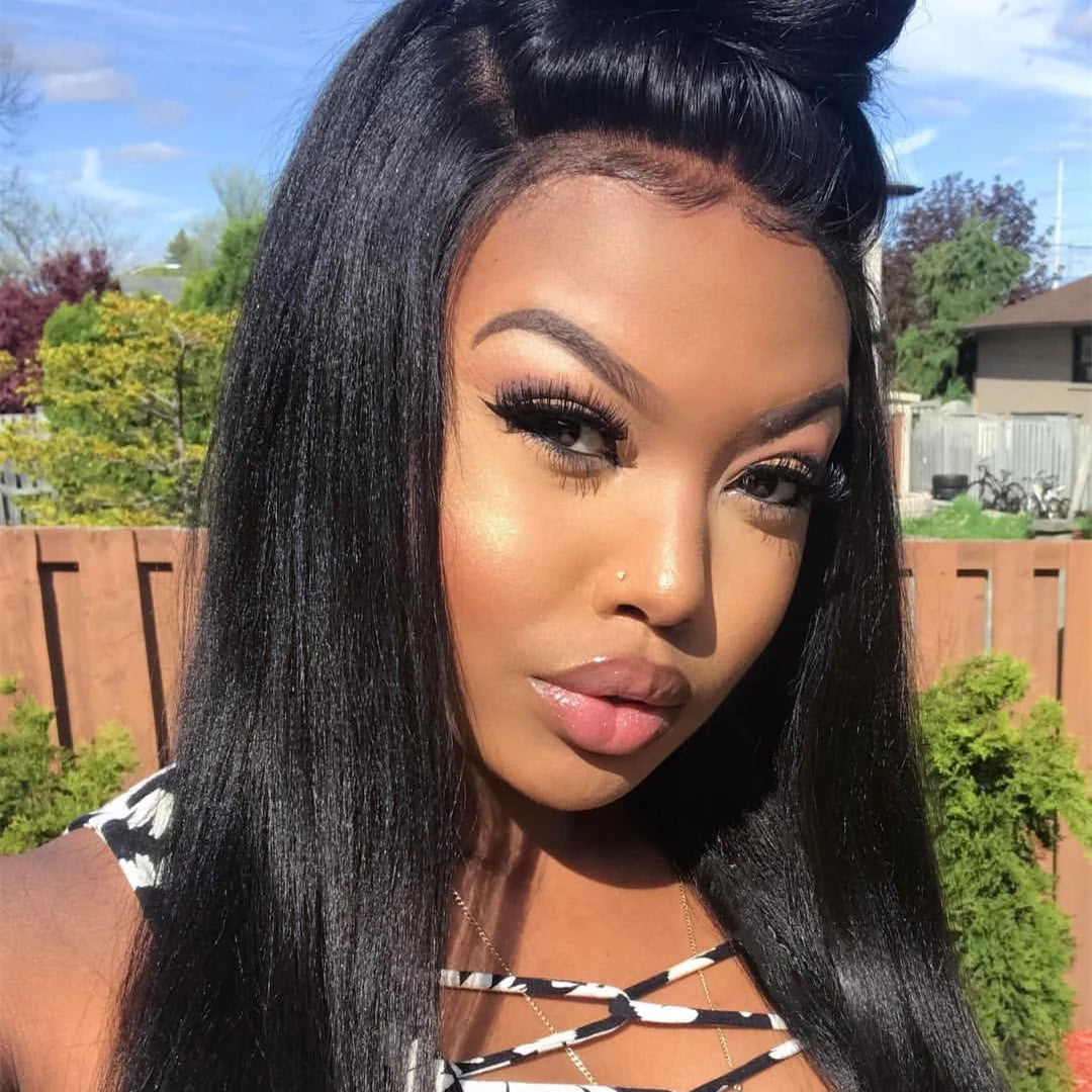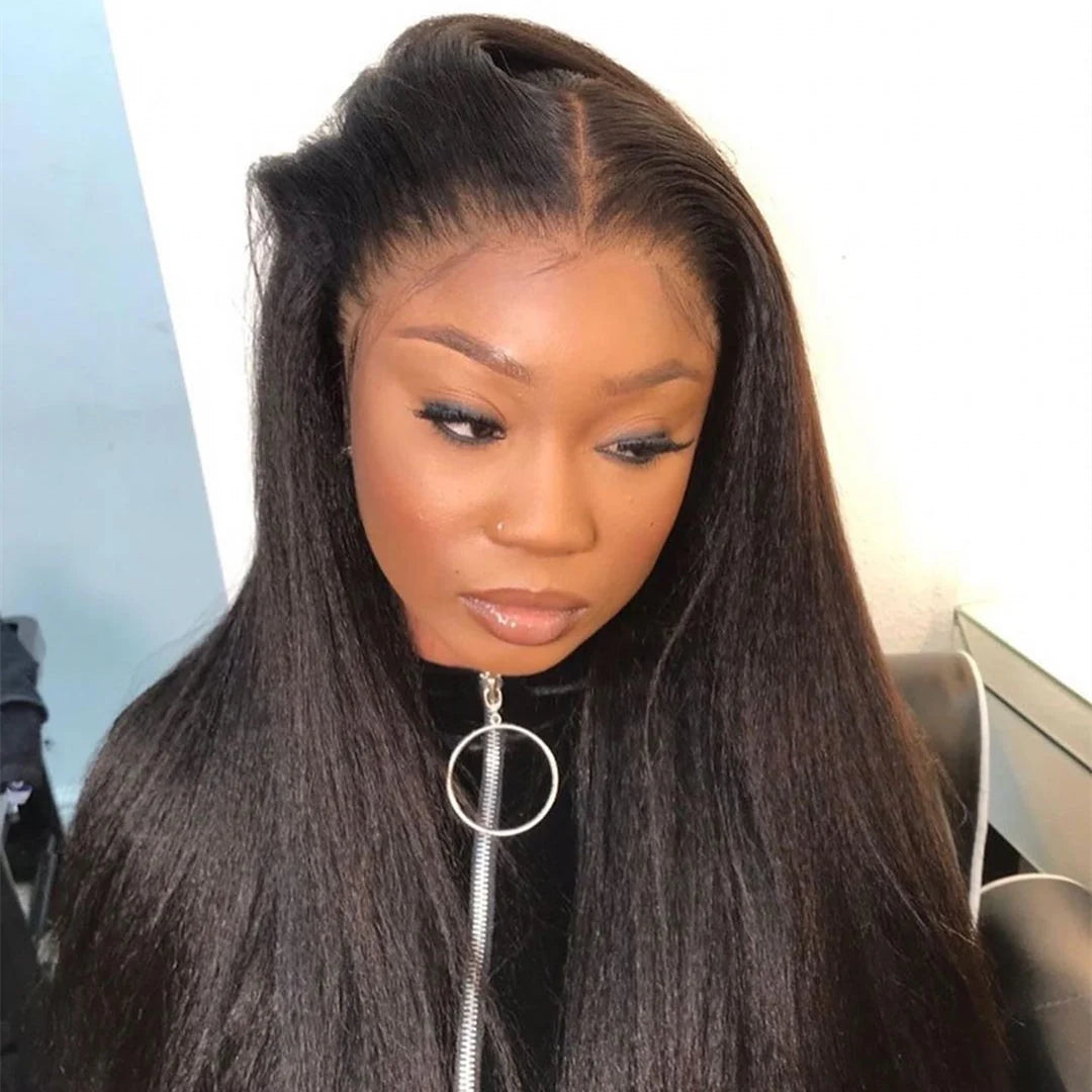 Yaki Straight 13×4 Full Frontal Lace Wig Pre Plucked Human Hair Wigs Glueless HD Lace Bleached Knots